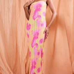 Logic Robe Bustier Longue Plissée Fleurie Multicolore à Dos Bénitier