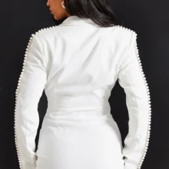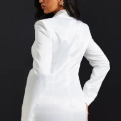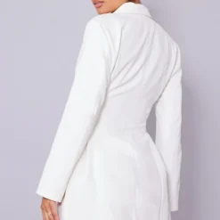 Robe Blazer Blanche Oversize à Manches Plissées Et Effet Superposé