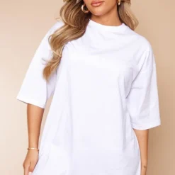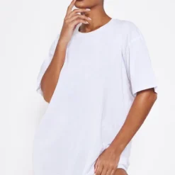Robe T-shirt En Coton Blanche à Manches Courtes Et Côtés Froncés