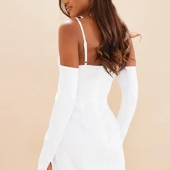 Robe Moulante Tissée Blanche à Taille Croisée Et Bonnets Armatures