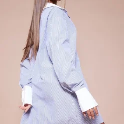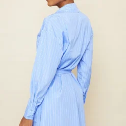 Robe Chemise Bleu Marine à Rayures Et Manches évasées Nouées