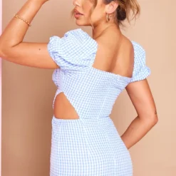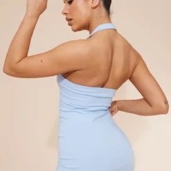 Robe Moulante Bleue Tissée Stretch à Détail Boucles Et Dos Nu