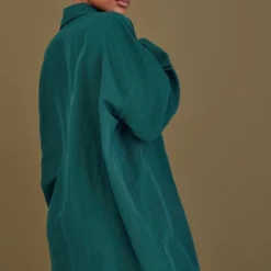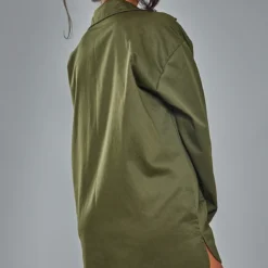 Robe Chemise Oversize En Popeline Vert Forêt à Mancherons Larges