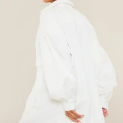 Robe Chemise Oversize En Maille Sergée Blanche à Ourlet élimé Et Boutons