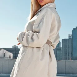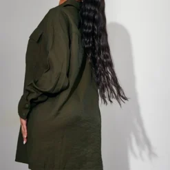 Robe Chemise Oversize Gris Pierre Style Cargo à Boutons Pression