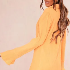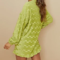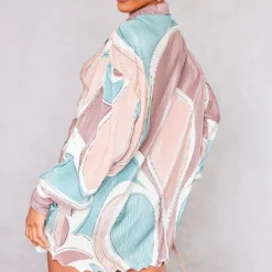 Robe Chemise Multicolore Imprimé Abstrait à Manchettes Et Ourlet Volanté