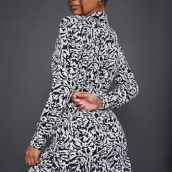 Robe Chemise Plissée Gris Anthracite à Imprimé Abstrait Et Ourlet Volanté
