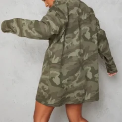 Robe Chemise Oversize Style Cargo Camouflage Multicolore à Poches