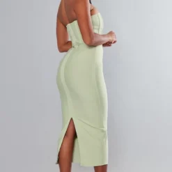 Robe Mi-longue Style Corset Drapée En Velours Chocolat à Buste Plissé