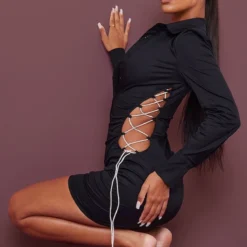 Robe Bustier Moulante Noire à Parties En Mesh Et Détail Bonnets