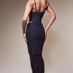 Robe Longue Vert émeraude à Détail Corset Drapé Et Bretelles