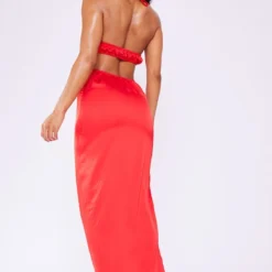 Robe Longue Satinée Orange à Jupe Drapée Et épaules Dénudées