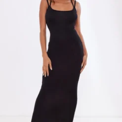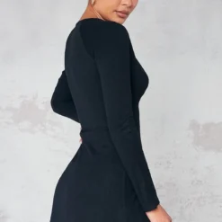 Logic Robe Moulante En Jersey Brossé Noir à Découpe Goutte D’eau