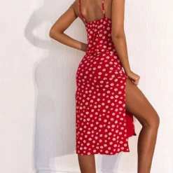 Robe Bretelles Fines Fendue En Jersey Rouge à Imprimé Floral