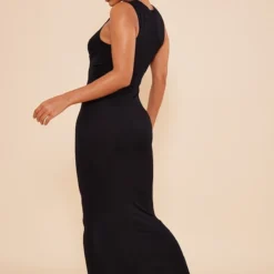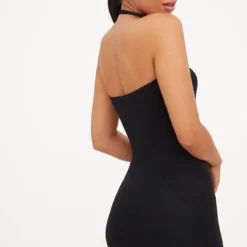 Robe Moulante Basique Noire à Bretelles Et Décolleté Très Plongeant