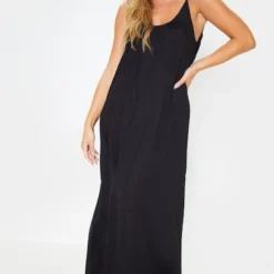 Robe Bustier Longue Noire En Dentelle Transparente à Bretelles