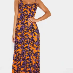 Diamond Robe De Plage Orange à Feuilles Et Ombres Oversize à Dos Ouvert
