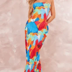 Logic Robe Bustier Longue Plissée Multicolore à Fleurs Abstraites Et Dos Bénitier