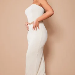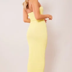 Logic Robe Bustier Longue Jaune Citron En Maille Côtelée Texturée