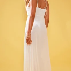 Robe De Plage Longue Crème En Maille Tricot Côtelée Déchirée