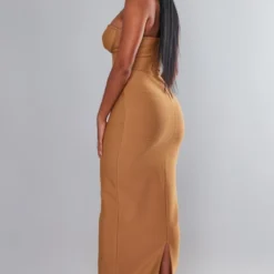 Robe De Plage Longue En Maille Tricot Marron Clair à Franges