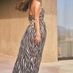 Robe Longue De Plage Gris Pierre Zébrée à Découpes Et Détail Cordes