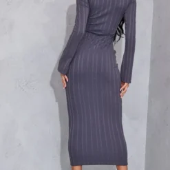 Robe Longue Côtelée Structurée Gris Pierre Détail Contours à Dos Nageur
