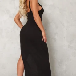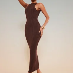 Robe Longue En Maille Tricot Marron Chocolat à Dos Nageur échancré