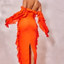 Robe Longue En Mousseline De Soie Orange Brûlé à Corset Et Manches Longues