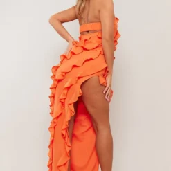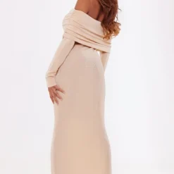 Robe Moulante Longue En Acétate Gris Pierre à Manches Longues Et Col Bardot