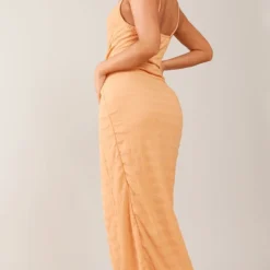 Robe Longue Très Côtelée écrue à Découpe Goutte D’eau Et Manches Longues