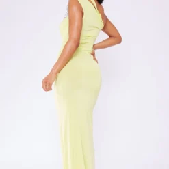 Robe Asymétrique Longue Très Moulante Vert Citron à Bretelle Nouée
