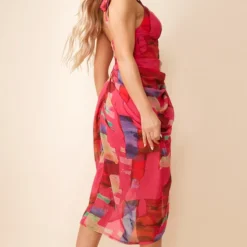 Robe Mi-longue En Mousseline De Soie Rose Vif Découpée Dos Nu à Empiècement Rose