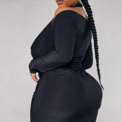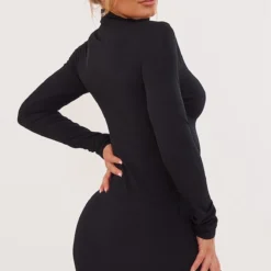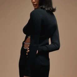 Logic Robe Moulante Côtelée Noire Découpée à Manches Longues