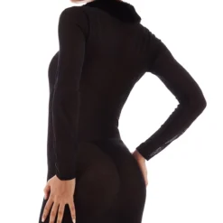 Mini Robe En Maille Tricot Transparente Noire à Col En Fausse Fourrure
