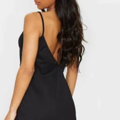 Mini Robe En Maille Tricot Côtelée Noire à Découpe Sur L’avant