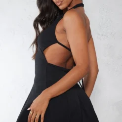 Robe Moulante Dos Nu En Maille Tissée Stretch Noire à Oeillets & Crochets