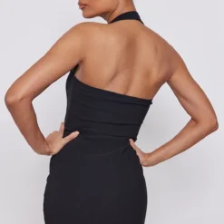 Robe Moulante Détail Corset Noire En Bandage à Bretelles Et Armatures