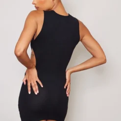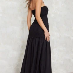 Robe Longue Côtelée Structurée Noire Détail Contours à Dos Nageur