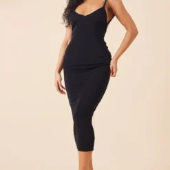 Robe Mi-longue En Acétate Noire à Bretelles Et Dos Plongeant Détail Noeud