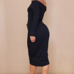 Robe Mi-longue Plissée Froncée Imprimé Fleuri Noire à épaule Unique