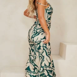 Robe Mi-longue Imprimé Abstrait Vert à Bretelles Fines Et Détail Drapé