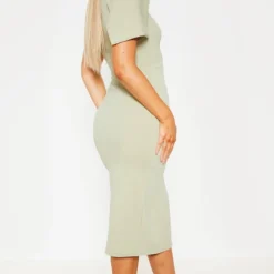 Robe Mi-longue Satinée Vert émeraude à Décolleté Plongeant Et Jupe Drapée
