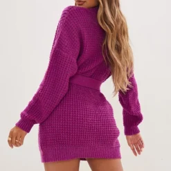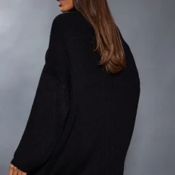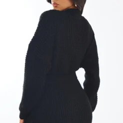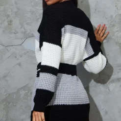 Robe Pull En Maille Noir & Blanc Style Colourblock à Col Roulé