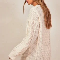 Robe Pull Crème à Doublure En Polaire Avec Col Et Parties Contrastantes