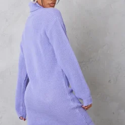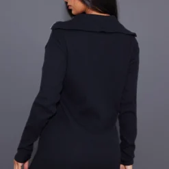 Robe Pull Oversize Noir Profond En Maille Chunky à Col Roulé