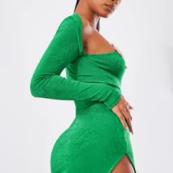 Robe Très Moulante Vert émreraude à Empiècement Et Manches Longues