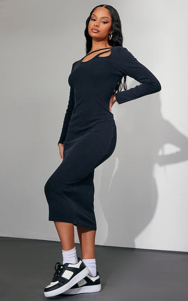 Trop belle dans cette robe longue. Avec la couleur bleu marine foncé de sa matière côtelée, ses découpes et son design à manches longues, elle a tout pour plaire. Portez-la avec une paire de baskets blanches et un perfecto en similicuir de couleur noire. Easy, surtout avec vous !