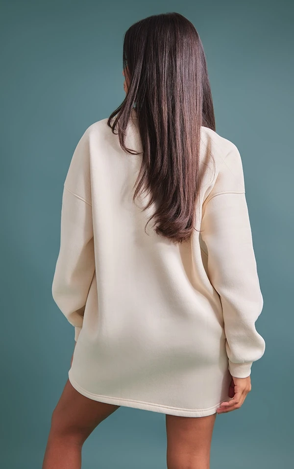 Parfaite pour afficher un look chill, cette robe pull. Avec sa couleur crème, sa matière en polaire, son slogan et son col au style polo, elle réalise un sans-faute qui fait bien plaisir. Portée avec une paire de baskets et une sacoche, elle vous assure un max de style !
