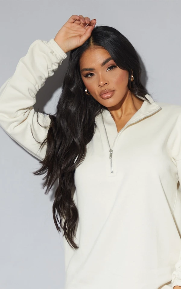 Si belle dans le coloris gris pierre de cette robe pull. On aime sa matière en sweat, son design à zip et ses manches froncées que l’on porte avec une doudoune sans manches et une paire de bottines pour un look sans faille comme on les aime. Love it !